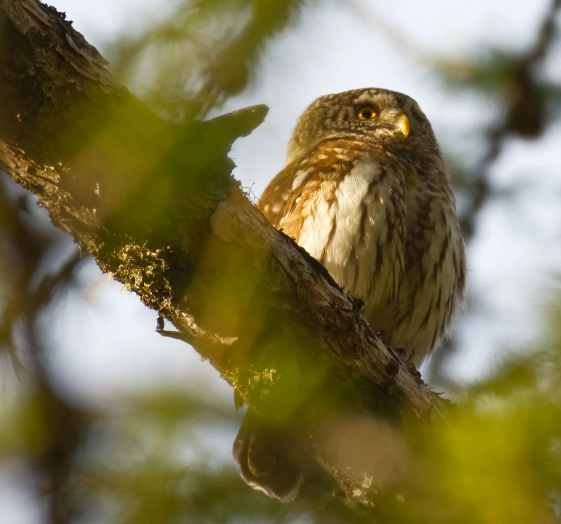 L'imitation du cri permet d'avoir une réponse et même d'attirer la Chevêchette. La zone de recherche se restreint mais l'observation n'est pas gagnée pour autant...
