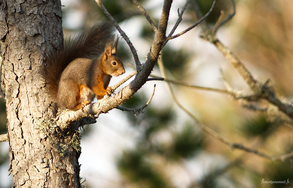 Très commun mais assez discret, l'Ecureuil roux est facilement identifiable par son ventre blanc et son pelage roux/brun.